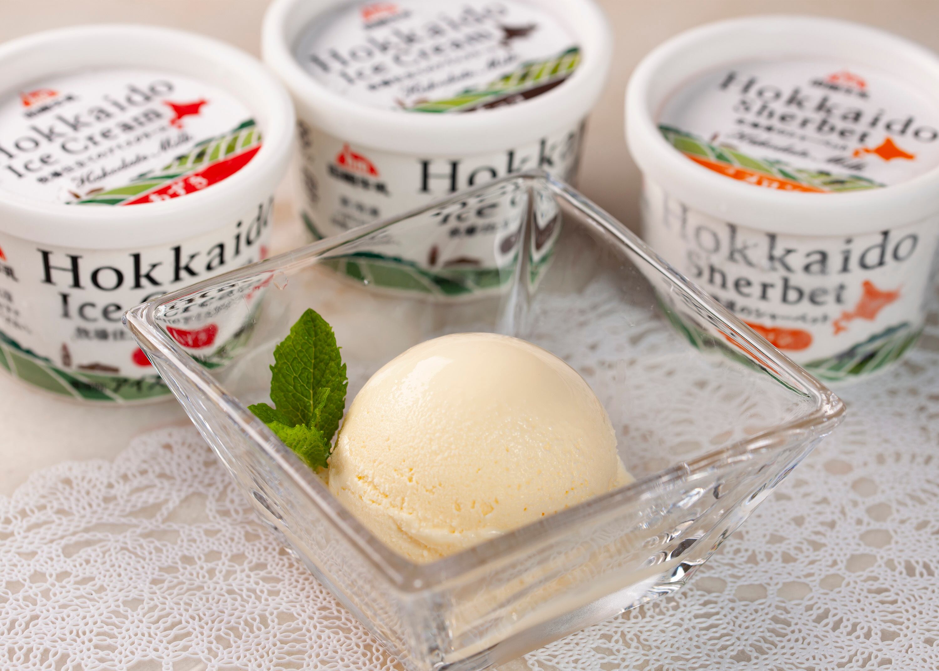 "北海道道南の自然で育った乳牛から採れた新鮮な生乳をたっぷり使用した濃厚なアイスクリームです。